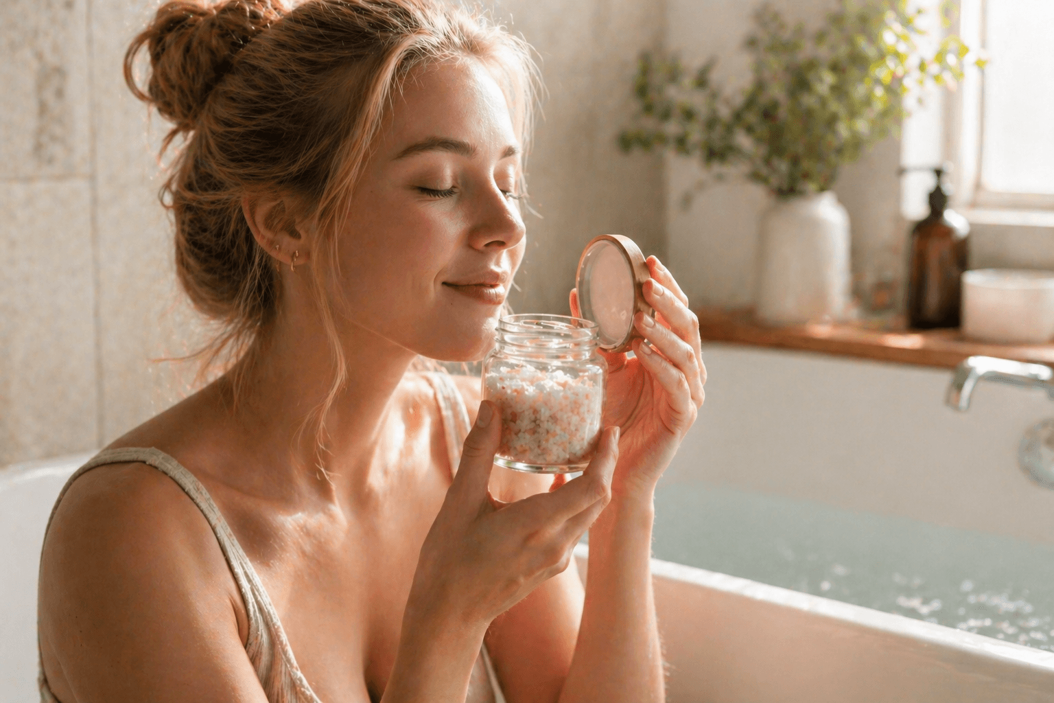 香り付きのバスソルトなら、入浴中に香りの心地よさも楽しめます。