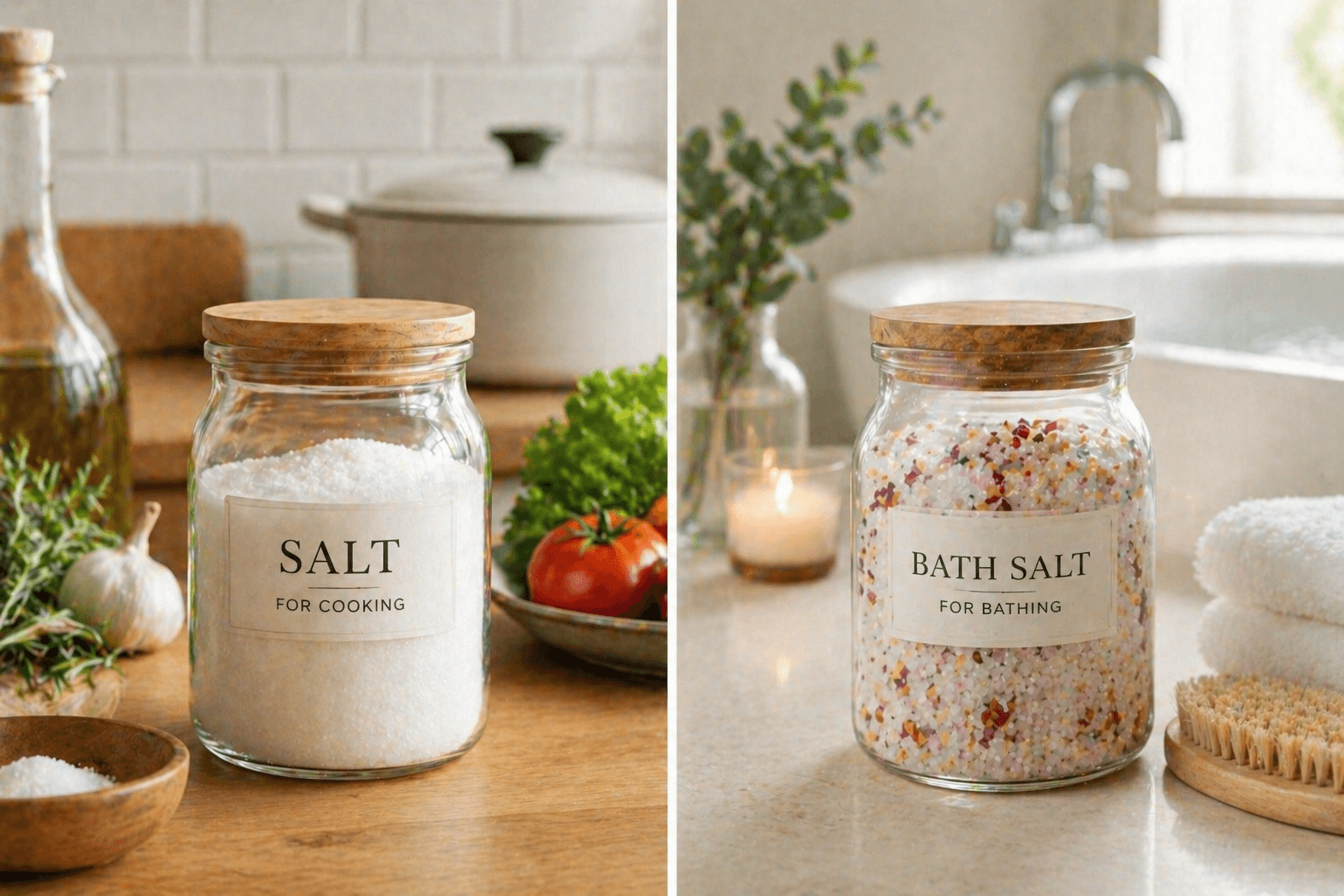 バスソルトと塩は、見た目が似ていても同じものではありません。